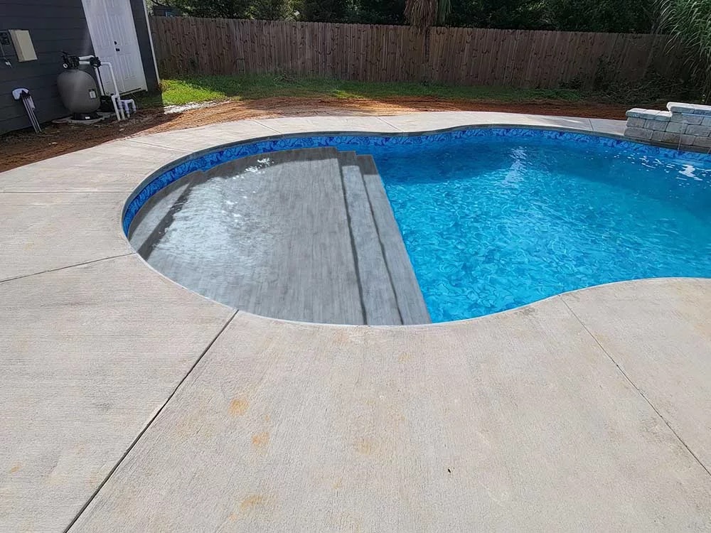This beautiful SureStep only pattern creates an inviting, smooth natural wood look on pool features. The warm neutral colors pair well with a range of colors. Designed for rectangular pool shapes and angular designs, this accent pattern is a beautiful complement for contemporary pool designs.