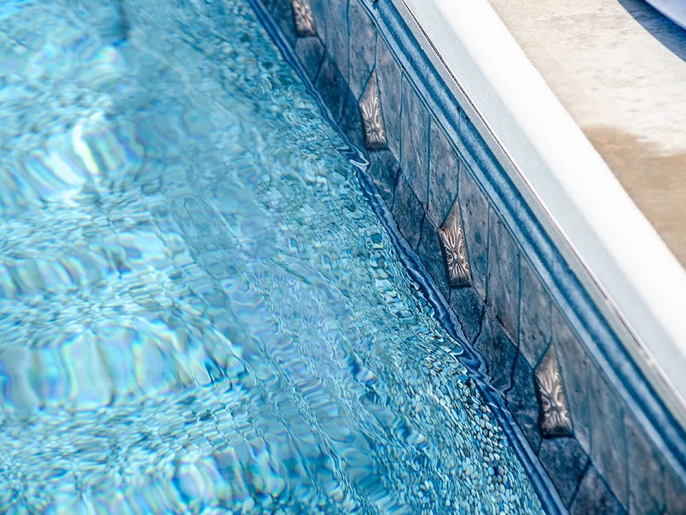 Valencia is a sophisticated new option for our popular tan pebble floor. Warm slate tiles border a beautiful gold medallion that will create a lustrous glimmer to the waterline of your pool.
